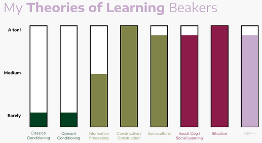 In this artifact, I demonstrate my ability to think critically through the use of Theory of Learning Beakers and my Museum Guide. In my museum, I explore the topics of behaviorism, cognitivism, social, learning, critical learning, out of school learning and adult learning. Over time, my theory of learning evolved into using minimal classical conditioning and operant conditioning. This is due to realizing that limiting an individual’s control over their behavior is not conducive to their growth. I also grew to understand the benefits of collaboration and think that culturally relevant practice stimulates deeper content knowledge. Furthermore, I found that theories like constructionism are highly effective in promoting student autonomy and gives students the space 'create’ when asked to display content knowledge and higher level understanding. This not only increases engagement but enhances student motivation overall.